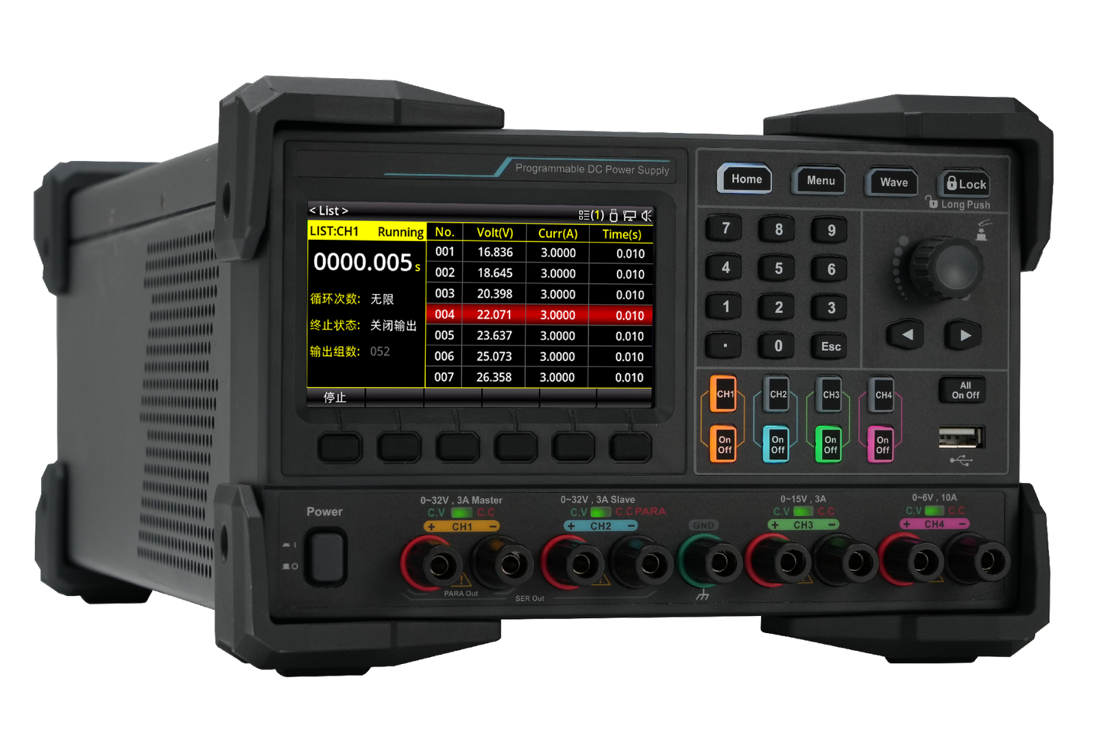 The Programmable linear DC power supply 297W 1007012 features 4 independent channels. CH1/CH2 can provide 32V/3A output and support one-click series-parallel connection with equal performance. CH3 (independent channel) offers 15V/3A output, while CH4 (independent channel) delivers 6V/10A output.​