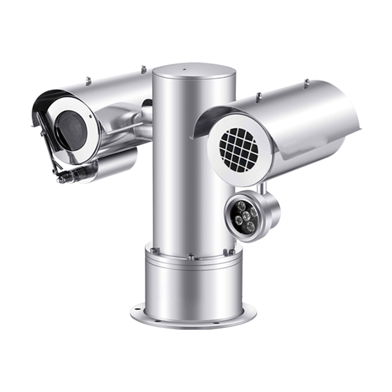 នេះ Dual-spectrum explosion-proof PTZ camera 1019010 is equipped with a built-in high-definition visible light camera and an advanced infrared thermal imaging detector, supporting 640×512 pixel thermal imaging resolution. It holds dual explosion-proof certifications for gas and dust, enabling operation in Gas Zones 1/2 and Dust Zones 21/22 to support enterprises’ safe production.