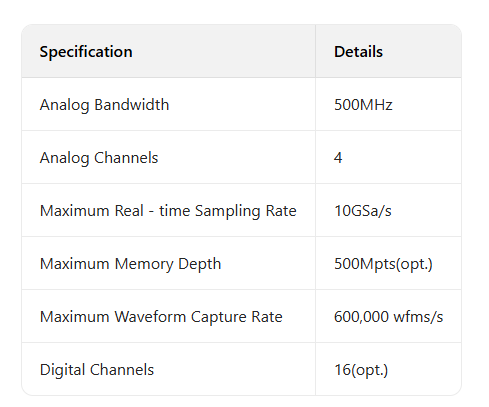 The Digital Oscilloscope 1024025 is a mid-range oscilloscope utilizing the RIGOL “Phoenix” core technology platform and UltraVision II technology. It features a 10.1-inch multi-touch capacitive screen that supports various gesture controls, providing users with a highly optimized interactive experience. 450,000 frames of hardware real-time waveform recording and playback allow users ample time to carefully review and analyze each recorded waveform.