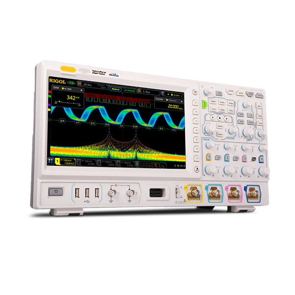 The Digital Oscilloscope 1024025 is a mid-range oscilloscope utilizing the RIGOL “Phoenix” core technology platform and UltraVision II technology. It features a 10.1-inch multi-touch capacitive screen that supports various gesture controls, providing users with a highly optimized interactive experience. 450,000 frames of hardware real-time waveform recording and playback allow users ample time to carefully review and analyze each recorded waveform.