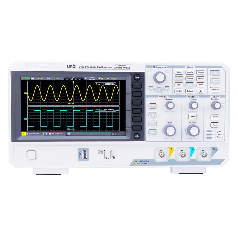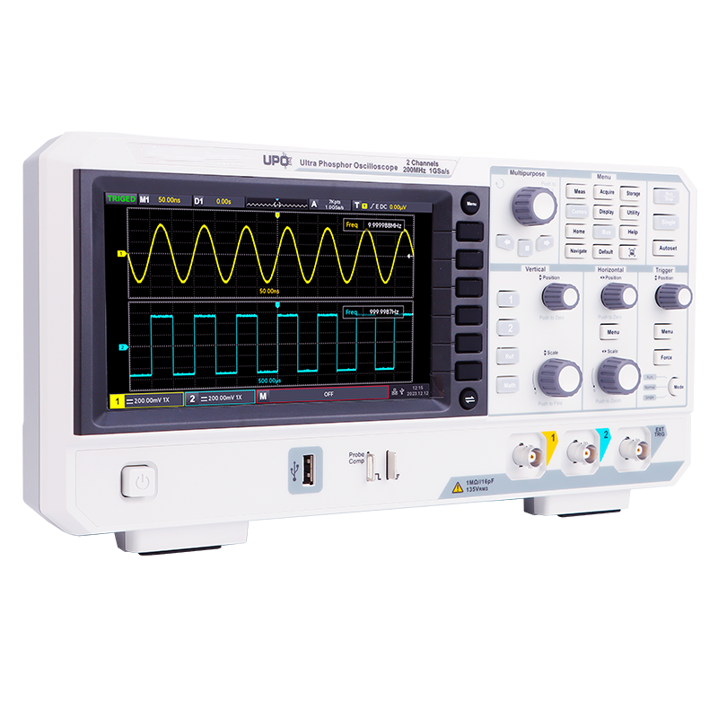 The Digital oscilloscope 200MHz/100MHz 1007007 adopts UNI-T’s innovative digital 3D technology—Ultra Phosphor 2.0—with a brand-new upgraded appearance. It enables functions like deep storage, high waveform capture rate, real-time waveform recording and playback, waveform-to-video conversion, and 256-level grayscale display.​