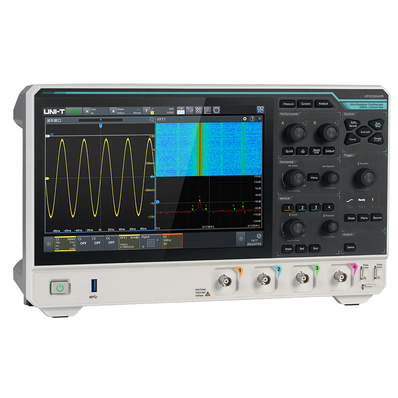 This oscilloscope supports 9 serial protocol decodings and 12 power analysis functions. It also enables remote control via WebServer, making it highly versatile for testing and analysis tasks in fields like high-precision power testing, ripple measurement, component performance optimization and medical equipment.